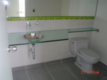 • Divisiones de baños en aluminio y acrílico; en vidrio templado con accesorios en acero y aluminio